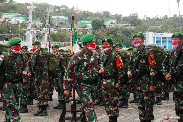JAYAPURA- Bertempat di Satrol X Lantamal X Jayapura Upacara penerimaan Satgas PAMTAS RI - PNG kali ini agak berbeda dengan tahun lalu, dikarenakan saat ini Wilayah Jayapura masih berstatus siaga Covid 19, oleh karena itu Kolakops Korem 172/PWY bekerja sama dengan tim gugus tugas pencegahan penyebaran Covid 19 Kota Jayapura, Provinsi Papua bersama dinas terkait menjadi harda terdepan dalam menyambut kedatangan Satgas Pamtas RI - PNG Yonif 403/WP dengan melakukan pemeriksaan dan sterilisasi saat personel maupun materiil yang akan di turun kan dari KRI Tanjung Kambani.Selasa, (9/3/2021).