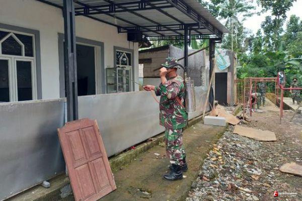 Peduli Covid 19, Satgas TMMD Semprotkan Disinfektan