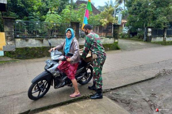 TNI yang tanggap akan situasi membuat ibu mariani tersenyum gembira. Hal itu terjadi saat ibu Mariani sedang berbelanja telur dari pasar ketika motor berhenti Bu Mariani mengalami kesulitan untuk menurunkan telur. Melihat hal tersebut Satgas dengan sigap langsung datang membantu menurunkan telur