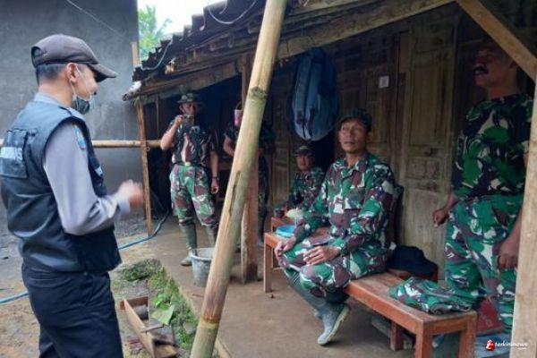 Kabupaten Semarang - Di sela-sela kegiatan pengecoran jalan, Pelda Susanto Babinsa Dusun Sarimulyo bersama Brika Bagio Bhabinkamtimas POLRI bergabung dengan satgas TMMD Reg ke - 110 menyempatkan berkunjung ke rumah warga" Suwano yang mendapat RTLH Dusun Sarimulyo Rt 03 Rw 05.