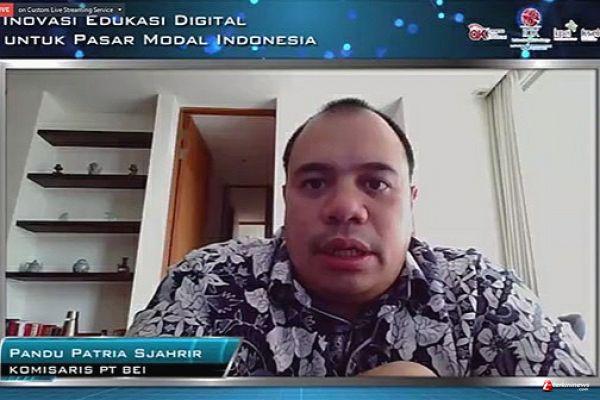 Rangkaian acara Inovasi Edukasi Digital untuk Pasar Modal Indonesia yang diselenggarakan secara virtual ini juga diramaikan dengan sharing session menarik dengan tema “Peran Galeri Investasi BEI dan Civitas Academica Bagi Masa Depan Pasar Modal Indonesia” bersama Komisaris BEI, Pandu Patria Sjahrir.