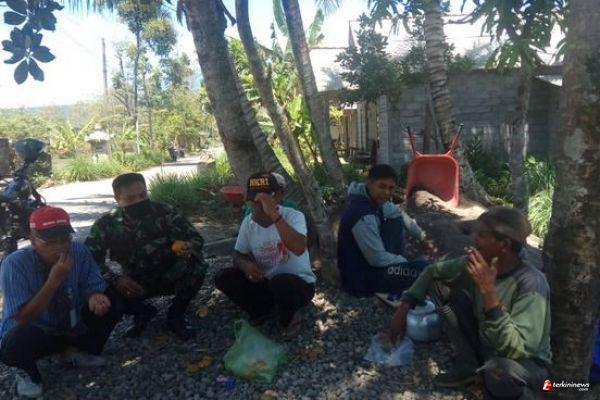 Tampak Serka Slamet(45) berbaur bersama masyarakat sambil bergurau berbagi rasa pengalaman untuk menghilangkan sedikit kelelahan, kelihatan jalinan kekeluargaan yang sudah terbentuk selama ini.