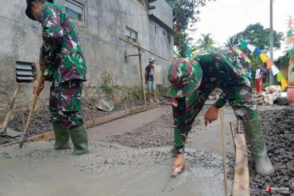 Kabupaten Semarang - Pembangunan jalan rabat beton yang tengah di kerjakan oleh satgas TMMD Kodim 0714/Salatiga Reguler ke-110 tahun 2021, di Desa Ketapang Kecamatan Susukan Kabupaten Semarang, sudah mulai menampakan hasilnya.