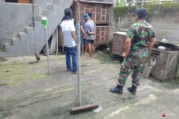 Kabupaten Semarang Satgas TMMD Yonif 410 Koptu Supriyanto disaat istrahat melihat salah satu warga Desa Ketapang yang memelihara ayam