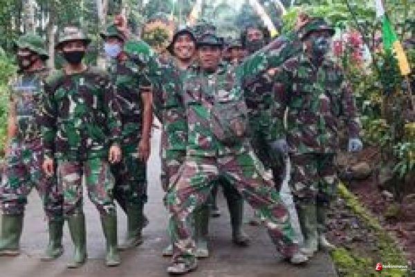 Kabupaten Semarang - Anggota Satgas TMMD Reguler ke-110 Kodim 0714/Salatiga, terlihat serda Wahyudi(40) mengangkat tangannya sambil berpose bersama saat mau berangkat kerja, bersama rekan rekan berjalan menuju sasaran kerja, capek mereka tak di perlihatkan, walaupun sebenarnya badan mereka betul-betul lelah.