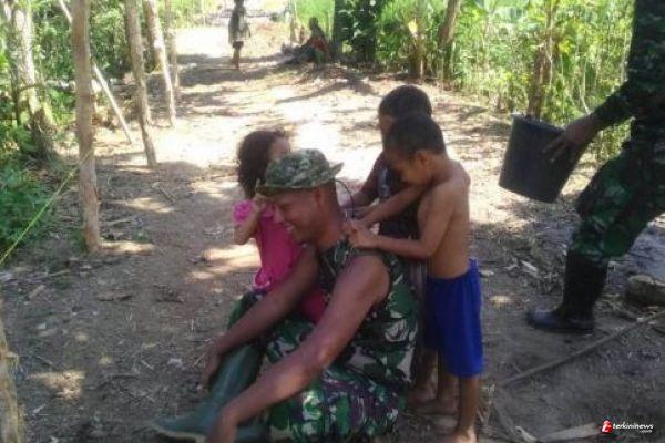 Salah satunya kedekatan anak-anak dengan anggota TMMD Dari Yonif 410/ Alugoro