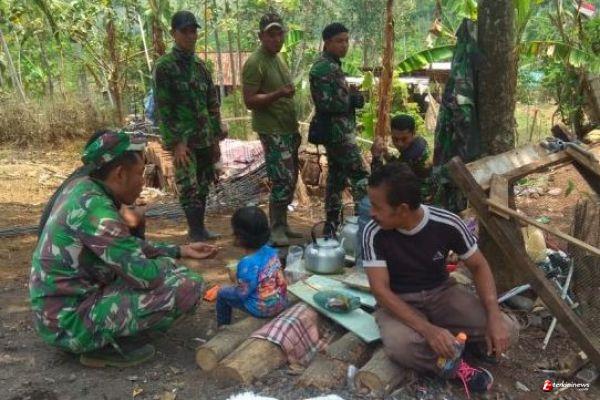 Pratu Edi(26), salah satu Anggota TMMD menunjukan Kegimbaraannya terlihat jelas dari raut wajahnya, bersama warga di tinggalkan rasa malu, mereka bersama menikmati makan siang, lahab sekali menikmatinya