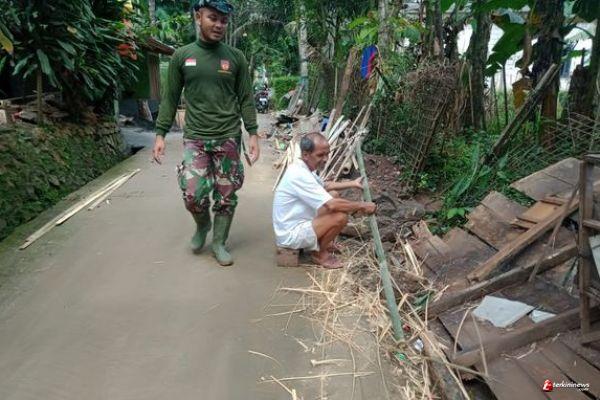 Pratu Randi,di sela kegiatanya menjadi satgas,dia juga sering bersilaturahmi ke warga,Paiman(63) kegiatan bapak ya seperti ini membuat kandang dari bambu"ucapnya