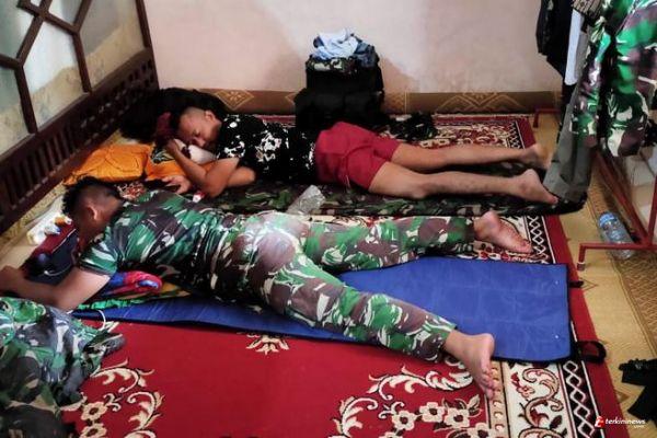 Di kediaman Mustofa yangg dijadikan tempat istirahat sementara selama pelaksanaan TMMD, usai santap siang dan shalat Dhuhur, para anggota Satgas memanfaatkan waktunya untuk tidur siang melepas penat.