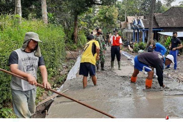 Warga Desa Ketapang Melanjutkan Pekerjaan Pengecoran Jalan Bersama Babinsanya