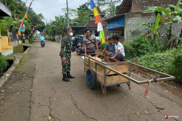 “Yang namanya anak-anak, pertama kali lihat tentara pasti akan merasa takut. Oleh karena itu, sepulang dari pengecoran dan membawa gerobak, kami sempatkan diri menyapa setiap anak-anak yang melintas. Alhamdulillah, akhirnya kami bisa akrab dengan mereka dan mau saya naikkan di gerobak dorong Untuk di ajak jalan jalan,” ungkap Sertu Sukamto.