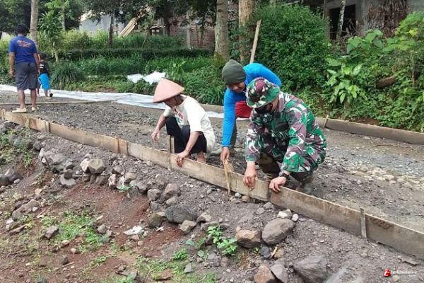 Kabupaten Semarang-Kerja sama TNI bersama masyarakat sangat indah mereka tetap semangat melanjutkan pengerjaan Pengecoran jalan, bersama warga Desa Ketapang Kecamatan Susukan Kabupaten Semarang.