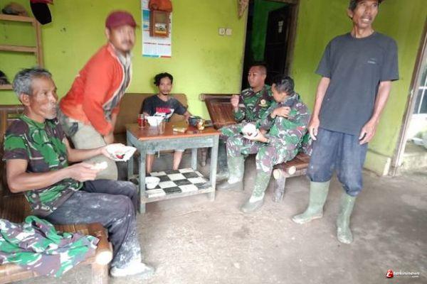 Salah satu anggota TMMD, Pratu Toha, tidak mau ketinggalan untuk ikutan makan siang. Disela-sela makan siang, terselip perbincangan hangat yang penuh dengan keakraban.