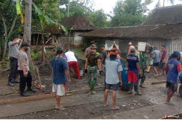 Kabupaten Semarang - Pembangunan jalan rabat beton yang kini sedang dikerjakan oleh satgas TMMD Kodim 0714/Salatiga Reguler ke-110, Sarimulyo Desa Ketapang Kecamatan Susukan Kabupaten Semarang, sinergitas TNI-POLRI dan warga desa, begitu nyata terlihat. Hal ini dapat dijadikan sebagai contoh bagi warga di Desa Ketapang.
