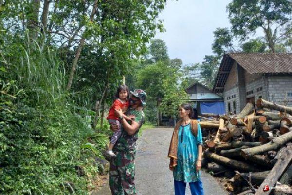Kabupaten Semarang -Suasana haru terasa saat satu personel Kodim 0714/Salatiga yang tergabung dalam Satuan Tugas TMMD datang ke rumah Ibu Anik warga mereka tinggal selama kegiatan TMMD Reguler ke-110 Kodim 0714/Salatiga yang berlangsung di Desa Ketapang Kecamatan Susukan Kabupaten Semarang Jawa Tengah.