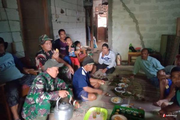Di sela-sela istirahat mengerjakan rehab RTLH, Pelda Huda, sambil menyantap hidangan makan siang, memberikan apresiasi kepada warga masyarakat Dusun Sarimulyo yang telah dengan sukarela bergotong-royong membantu Satgas TMMD.