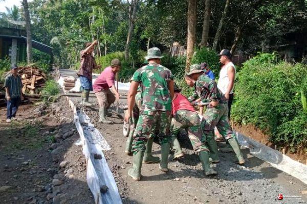 Wilayah Dusun Karangasem, Desa Ketapang, Kecamatan Susukan, Kabupaten Semarang, tampak sekelompok Prajurit TNI terlihat berkumpul bersama dengan warga, mereka tampak guyub ber gotong-royong di tengah-tengah suasana khas pedesaan di pagi hari, sambil membawa adukan untuk pengecoran .