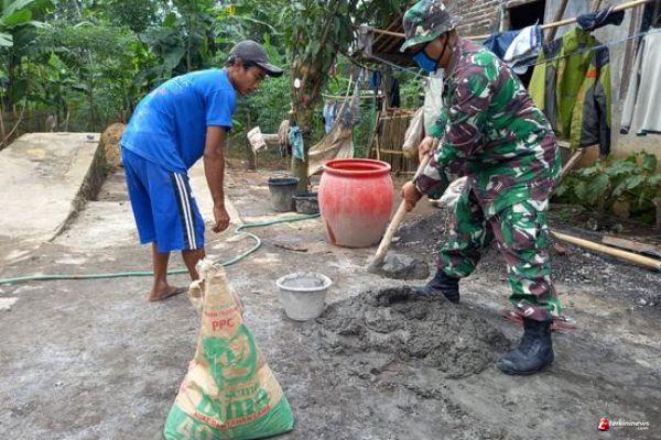 "Dengan bekerja sama pekerjaan yang berat akan terasa ringan, pengerjaan RLTH milik Bapak Suyetno mulai pada tahap mengecoran lantai. Pembuatan adukan ini juga harus pas untuk mendapatkan hasil yang maksimal," ucap Sertu Sugeng.