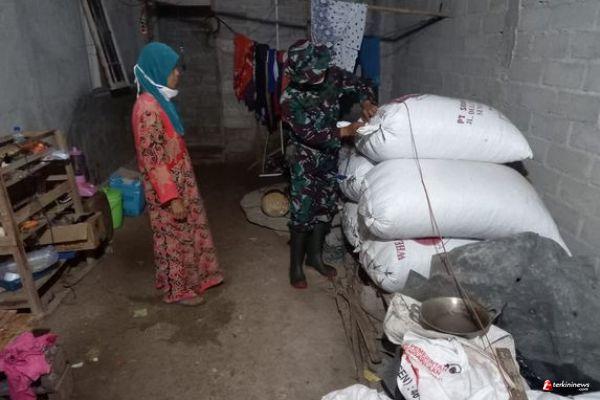 Kab Semarang – Satgas TMMD Reguler ke 110 Kodim 0714/ Salatiga Serda Ari membantu Marni (67) membuka karung yang berisi benih mahoni di Desa Ketapang, Kecamatan Susukan, Kabupaten Semarang, Minggu (14/03/2021)