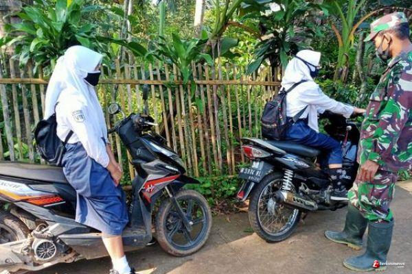 Saat melihat Rani (14) Susi (15)Siswi SMP yang pulang dari sekolah Salah satu Satgas TMMD Regular ke 110 Kodim 0714/ Salatiga langsung menghampiri untuk sekedar bertanya tentang metode Daring.