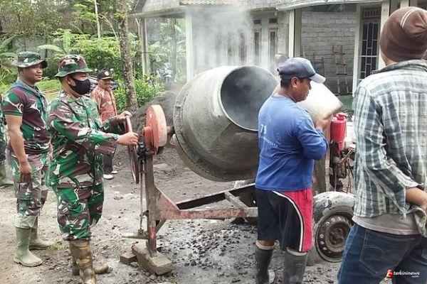 Kabupaten Semarang - Pagi yang cerah, semangat masih terlihat antara TNI dan warga, yang sama- sama melaksanakan kegiatan Program TMMD Reguler ke-110 Kodim 0714/Salatiga, berbaur menjadi satu bahu membahu melanjutkan pekerjaan pengecoran jalan.