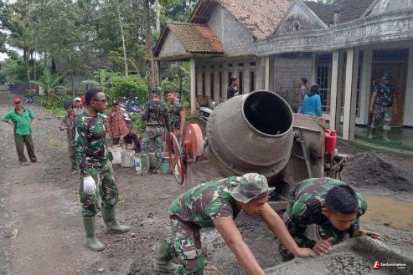 Kabupaten Semarang-Semangat pantang menyerah terlihat dari mereka para anggota Satgas TMMD dan sejumlah masyarakat yang sedang mengerjakan dan merampungkan kewajibanya dalam pengecoran jalan.