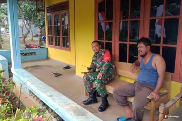 Tamtama piket Satgas TMMD, Kopda Ma'ruf(34) sambil memantau perkembangan pekerjaan TMMD, dia juga komsos kepada warga sekitar "apa yang kami bisa kerjakan untuk Satgas TMMD ini, akan kami lakukan dengan maksimal" tuturnya.
