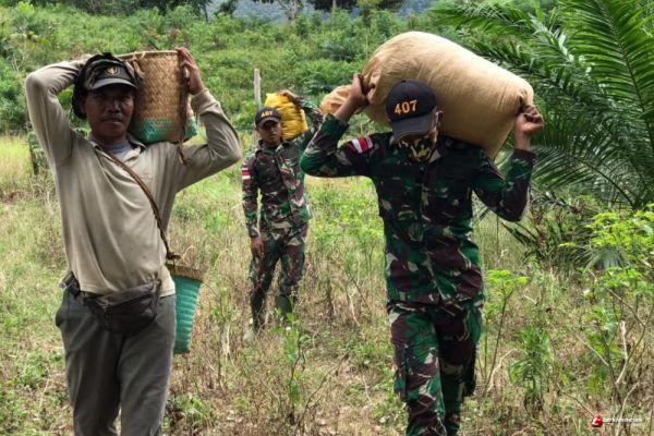 Percepat Proses Panen, Satgas Pamtas Yonif 407/PK Bantu Warga Perbatasan Panen Padi