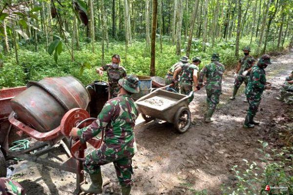 Hal ini terlihat dari beberapa satgas TMMD beserta warga masyarakat yang sedang menjalankan mesin molen.