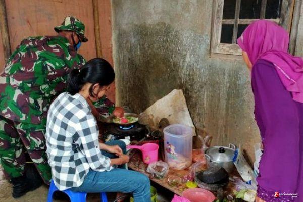 Melihat ibu ibu PKK yang masak untuk makan siang, Serda Harun langsung terpanggil jiwanya untuk ikut memasak di dapur bersama ibu ibu PKK.