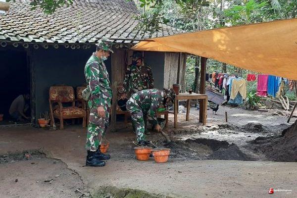 Kini Satgas TMMD Reguler ke 110 dan warga bergotong royong mendirikan tenda di lokasi RTLH peralatan dan terpal untuk membuat memasang tenda.