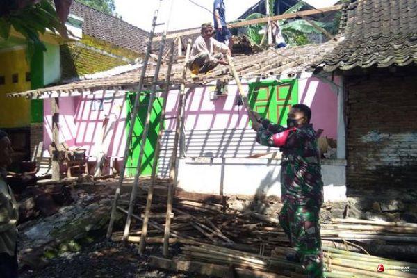 " Alhamdulillah sudah mulai mengerjakan atap tidak lama lagi mungkin ini sudah selesai. Pemasangan Reng dan dikerjakan secara gotong royong, dengan semangat tentunya proyek ini akan rampung sesuai tanggal yang di tentukan. Terima kasih pak TNI atas bantuan yang sudah diberikan kepada kami.Berkat TNI juga saya bisa mempunyai rumah gedong," ucap Baedowi.
