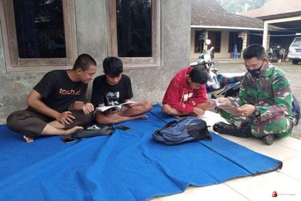 "Saya senang sekali bisa belajar bareng bersama Pak TNI yang kebetulan bertugas di desa saya"ungkap salah seorang anak yang sedang belajar.(16/03/2021)