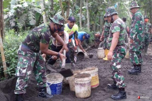 Kabupaten Semarang- Satgas TMMD Reguler ke-110 Kodim 0714/Salatiga kebut pengecoran jalan Dusun Sarimulyo Desa Ketapang Kecamatan Susukan Kabupaten Semarang, Senin(15/03/2021)