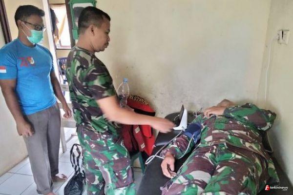 Serka Widodo selaku anggota tim kesehatan dari Denkesyah Salatiga yang bertugas dilapangan memberikan pelayanan kesehatan kepada personel Satgas maupun masyarakat di lokasi sasaran TMMD di Desa Ketapang.