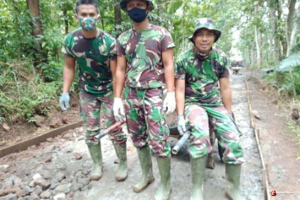 Untuk mempercepat program pembangunan jalan rabat beton tersebut, tanpa kenal lelah mereka berbaur dengan warga, saling bahu-membahu mengebut pengecoran jalan di Desa Ketapang.