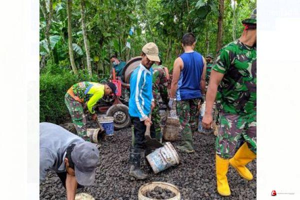 Kabupaten Semarang - Sejuknya Pagi hari memberikan semangat kerja melanjutkan pekerjaan pengecoran jalan dalam Program TMMD Reguler ke-110 Kodim 0714/Salatiga, saling bahu membahu, bergotong royong TNI bersama masyarakat, Dusun Sarimulyo, Desa Ketapang, Kecamatan Susukan, Kabupaten Semarang, Senin (15/03/2021)