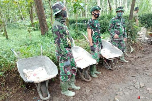 Kabupaten Semarang - Berjajar rapi angkong terparkir, nampak TNI disampingnya siap menunggu panggilan, bukan penumpang tapi material yang membutuhkannya, bersama TMMD Reguler ke-110 Kodim 0714/Salatiga.