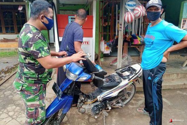 Kabupaten Semarang,Penjual bensin eceran bertempat di Salah satu Rumah warga Suradi ( 40 ) warga Desa Ketapang kecamatan Susukan,Sangat bermanfat,tak jarang penyelamat para pengendara kendaraan bermotor saat di tengah perjalanan bahan bakar menipis bahkan habis,tepat letak di salah satu rumah warga pengisian bahan bakar yang tidak jauh.Personil Satgas TMMD Reguler ke 110 Kodim 0714/Salatiga menyempatkan waktu untuk melaksanakan pengisian BBM Kopda Lasimin ( 32 ) merasa sangat membantu untuk kebutuhan sehari hari jika bepergian Untuk melaksanakan pekerjaan.