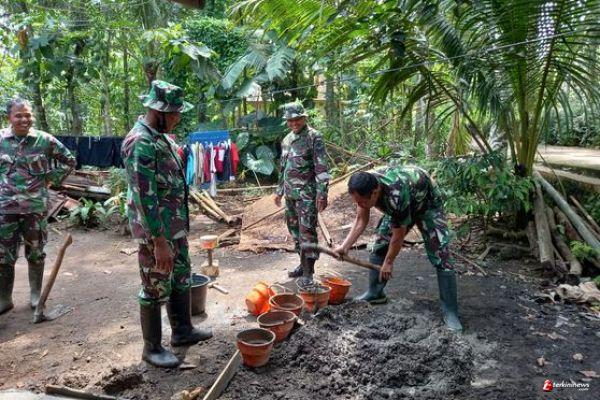 Contohnya, saat Serma Slamet Riyadi bersama satgas lainya membuat ukuran adonan semen dan pasir, dia berembuk terlebih dahulu dengan seorang warga Desa Ketapang Pak Sulomo (50).