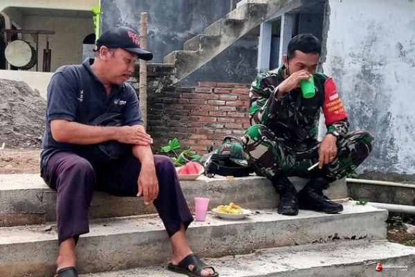 Seperti sore itu, Sertu Heri, setelah selesai melaksanakan tugas pengecoran jalan, menyempatkan waktunya berkunjung ke rumah Khoiron (51 tahun), warga Dusun Sarimulyo Desa Ketapang.