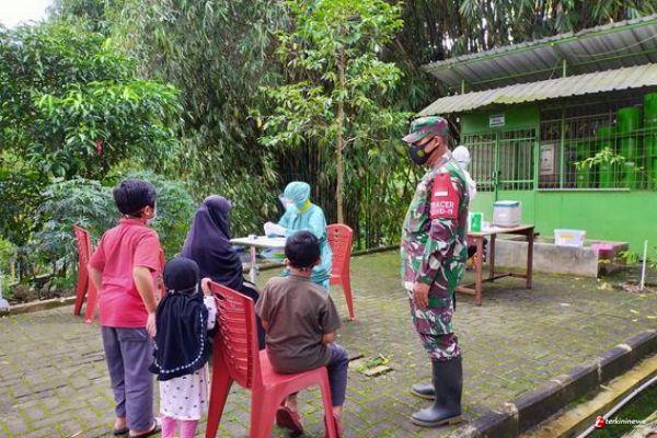 Kabupaten Semarang- Serma Joko S mendampingi sebagian warga Desa Ketapang untuk melaksanakan vaksinasi di Puskesmas Kecamatan Susukan Kabupaten Semarang, Senin (14/03/2021)