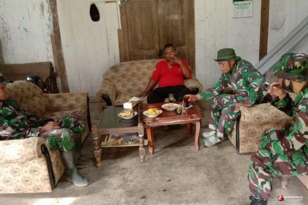 Kabupaten Semarang - Selasa (16/03/2021).Serka Imam dan rekan satgas TMMD Reguler ke-110 Kodim 0714/Salatiga melaksan silaturahmi di rumah Bapak Sami'un (53) warga Desa Ketapang sambil menunggu istrihat ditemani Kopi dan pisang goreng