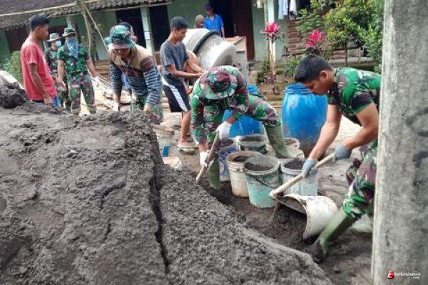 Tak pernah luntur kebersamaan TNI bersama masyarakat Desa Ketapang Kecamatan Susukan Kabupaten Semarang, Bersama cangkul dan ember selalu menemani TNI dan warga setiap melaksanakan pekerjaan pengecoran jalan.