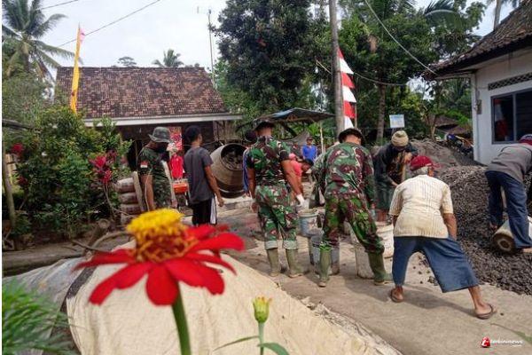 Semangat kerja masyarakat begitu terlihat dari antusiasme masyarakat dalam mengerjakan pengecoran jalan,mereka terlihat kompak bersama dengan para anggota Satgas TMMD.(16/03/2021)
