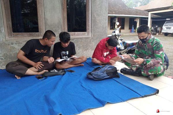 " Kami melihat anak anak sedang belajar dengan metode daring lalu kami hampiri, siapa tau anak anak mengalami kesulitan." Serda Heri.