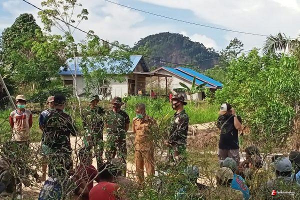 Pengkadan -Satgas TMMD -110 Putussibau Sinergitas dengan Forkomincam Pengkadan,Kamis 18 Maret 2021.