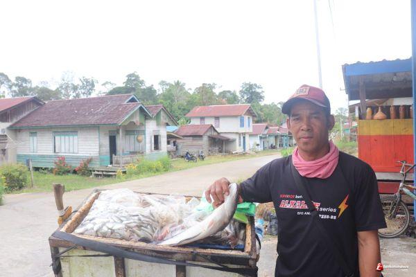 Pengkadan - Seorang penjual ikan yang berasal dari Dusun Menendang, Desa Hulu Pengkadan, Kecamatan Pengkadan Kabupaten kapuas Hulu. Kamis (17/03/2021)