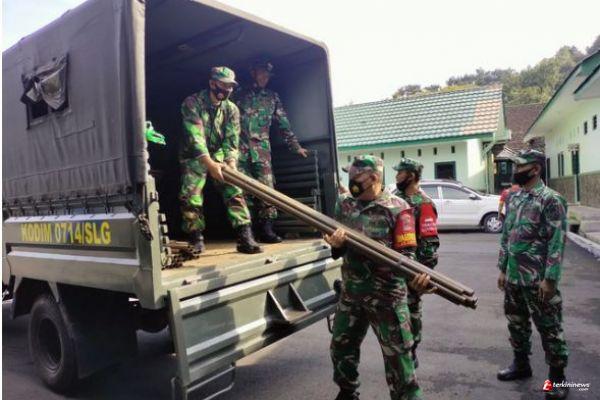 Anggota Siaga Kodim 0714/Salatiga Mengangkut Tenda Lapangan ke Lokasi TMMD