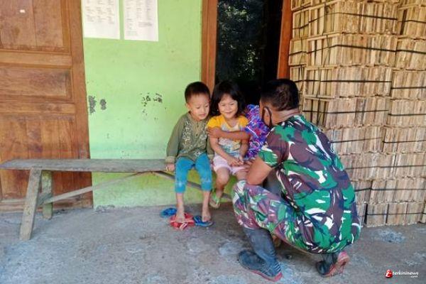 Kabupaten Semarang,Tanpa Pikir Panjang personil Satgas TMMD Reguler ke 110 Kodim 0714/Salatiga yang cukup kekar ini, menghampiri beberapa anak salah satunya Dinda ( 5 ) sambil menyapa dengan candaan Anak anak Desa Ketapang Kecamatan Susukan supaya mereka tidak merasa takut saat di dekati Anggota TNI yang ingin menyampaikan tentang pengenalan disiplin sejak dini,misal bangun pagi,tidak terlambat beribadah dan ke sekolah.
